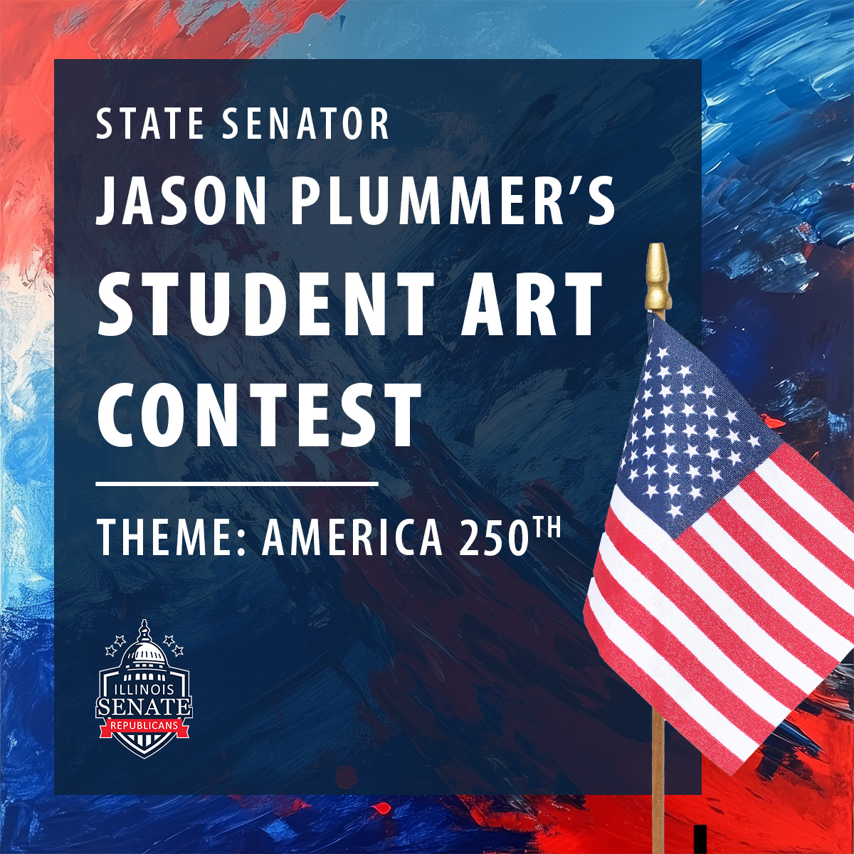 In honor of America’s 250th and advocating for the Arts in Illinois, State Senator Jason Plummer is hosting an art contest. The contest is open to 1st through 8th Grade students throughout the 55th Senate District, and artists will have an opportunity to showcase their skills through the chosen theme of celebrating the 250th birthday of the United States of America.